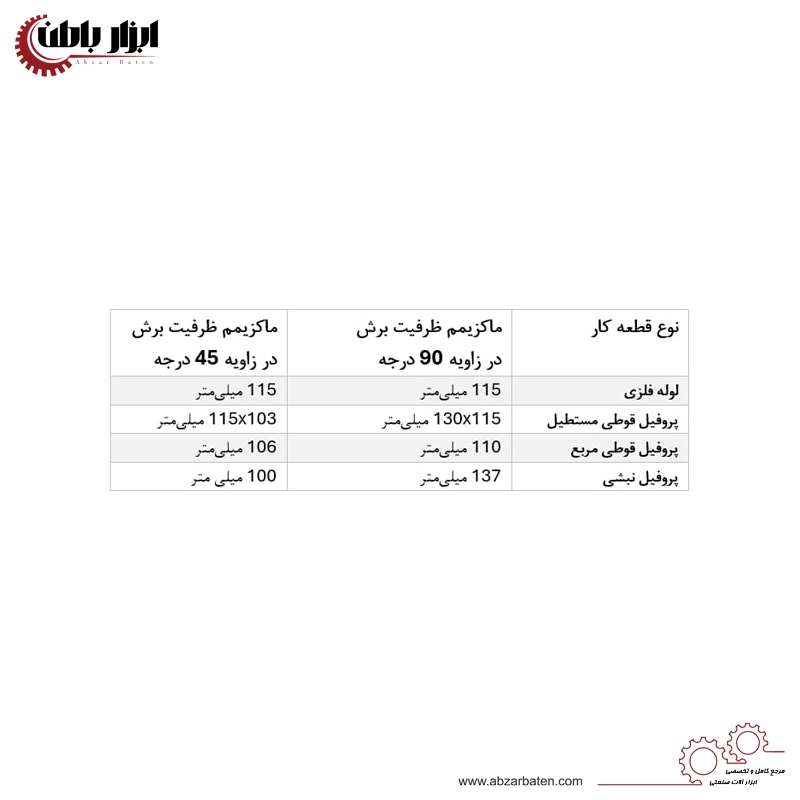 100 تا 137mm بسته به زاویه برش و قطعه کار