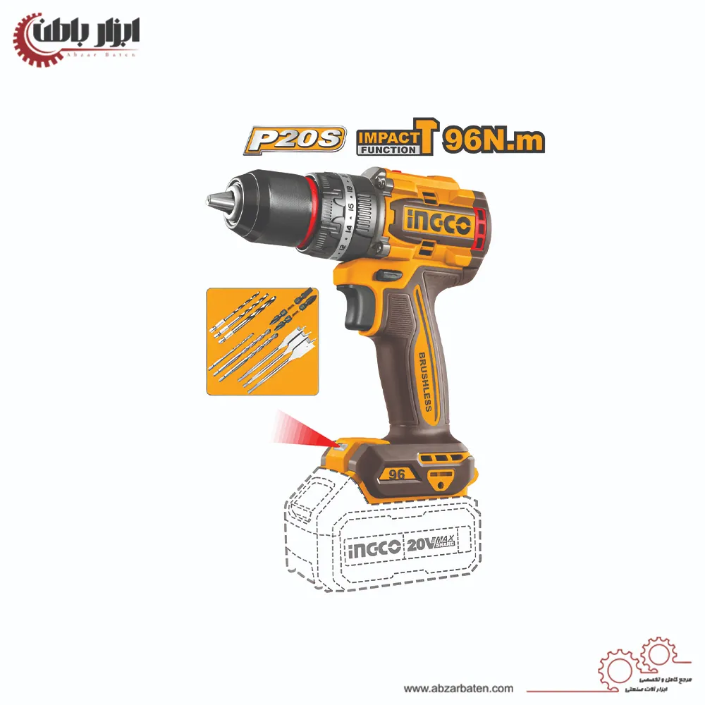 دریل شارژی براشلس چکشی 96 نیوتن اینکو مدل : CIDLI209681