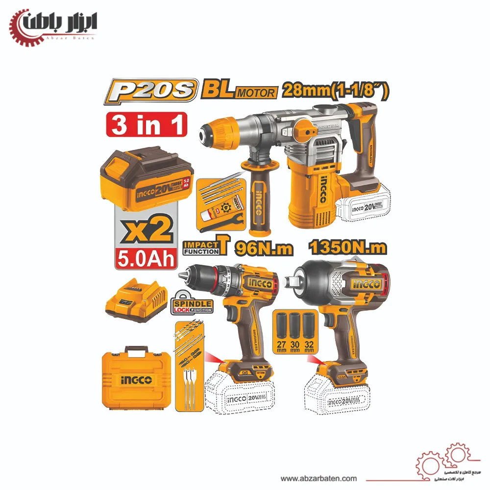 ست کمبو 3 عددی ابزار شارژی اینکو مدل : COSLI250281