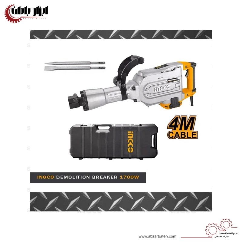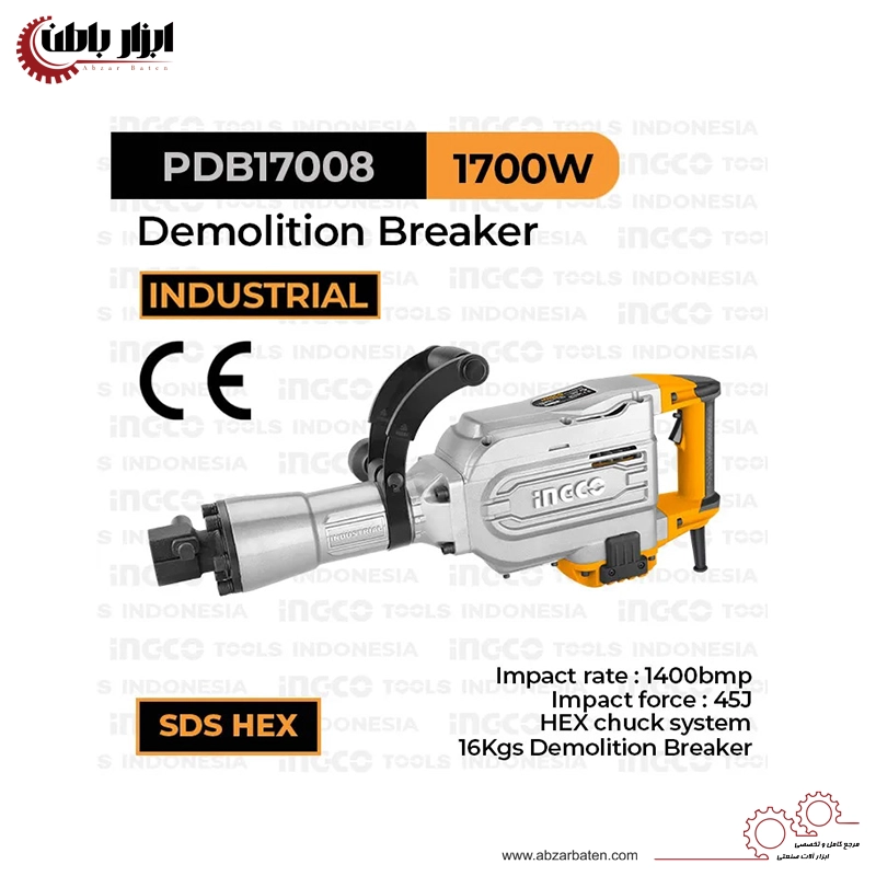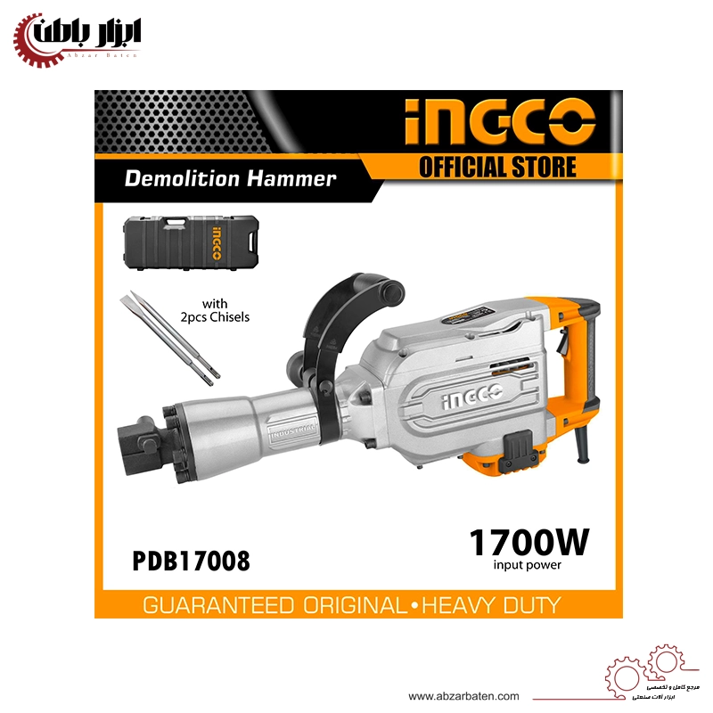 چکش تخریب ۱۶ کیلویی ۱۷۰۰ وات اینکو مدل PDB17008 در کشور چین ساخته شده و تحت لیسانس آمریکا روانه بازارهای بینالمللی میشود. این ابزار جهت تخریب انواع ساختمان، بتن، دیوار و همچنین سطوح بسیار سخت نظیر آسفالت کاربرد دارد.
