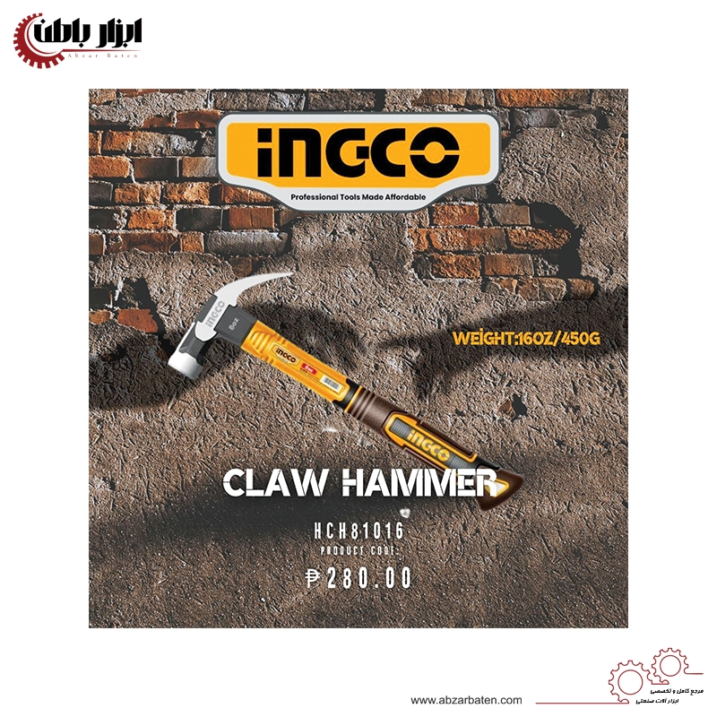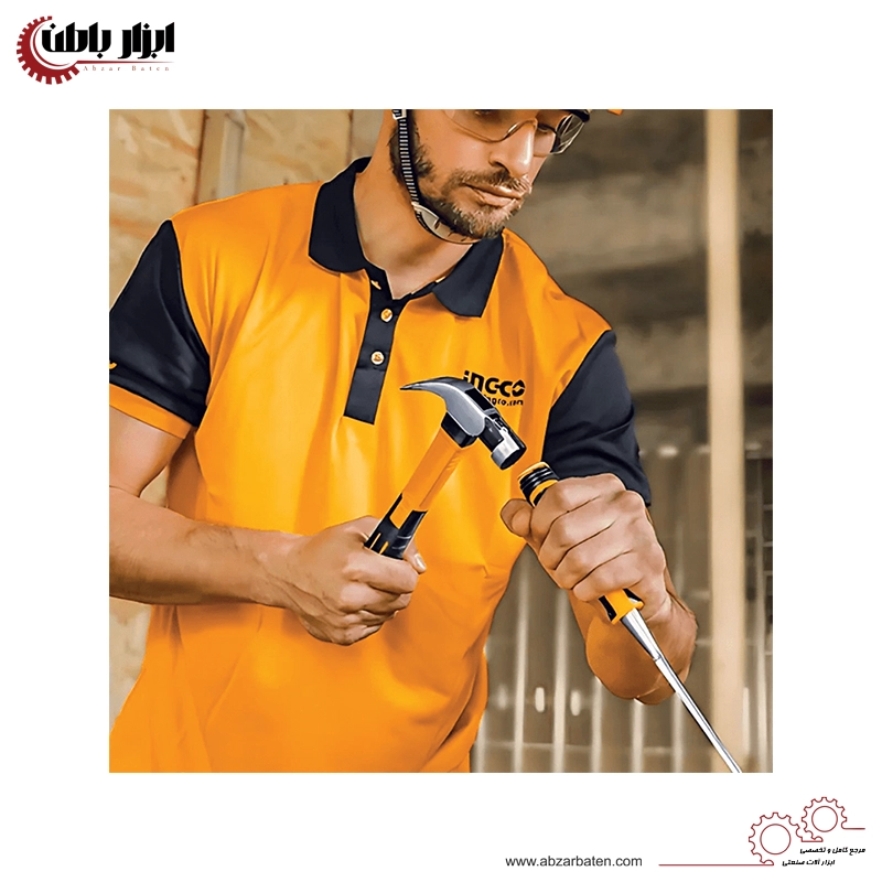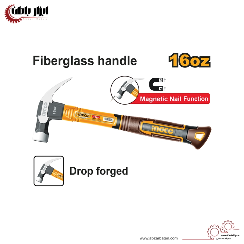 مجهز به آهن ربا برای نگهداری میخ روی سر چکش